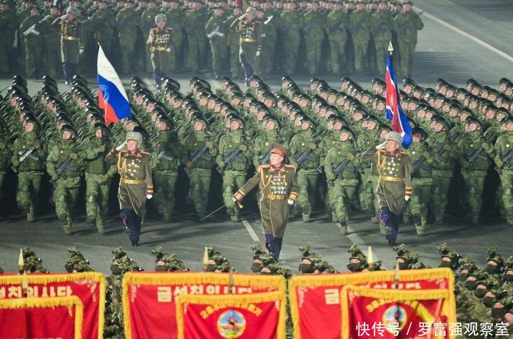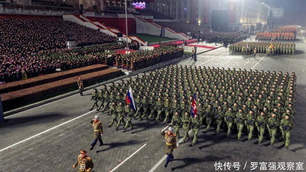 但这一次,朝鲜这次把焦点放在“人”上,而不是“武器”上。最大的亮点是,朝鲜方队里出现了“海外作战部队”,方队成员穿着俄式军服入场,还举了俄罗斯国旗,很显然这支部队与俄乌战场有关,平壤通过这个细节表达了与莫斯科的合作关系。当更重要的是,朝鲜刻意没有展示战略武器。